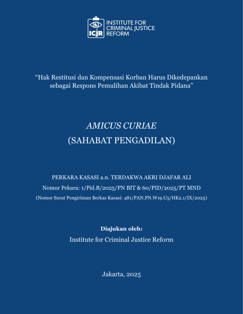 PublikasiICJR Kirim Amicus Curiae dalam Perkara Pembunuhan dan Perkosaan Perempuan di Sulawesi Utara ke Mahkamah Agung: Hak Restitusi dan Kompensasi Korban Harus Dikedepankan sebagai Respons Pemulihan Akibat Tindak Pidana AdminICJR - 01/10/2025